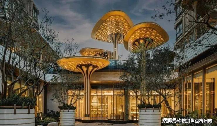 仿佛在林间绽放的花瓣,亦如极具生命力的大树,豁然呈现在归家业主面前。既呼应了整体场地的自然氛围,又营造出奢华与前卫并存的视觉冲击,呈现出一场优雅奢华、又极富松弛感的归家仪式。