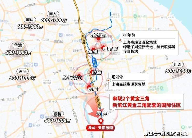 众所周知,项目高端城市资源高度集中在2大滨江黄金三角:由外滩-陆家嘴-北外滩构成的传统中央商务区,由前滩-徐汇滨江-世博构成的新兴中央活动区。其他所有板块几乎都是经由它的价值辐射。换言之,谁距离他们更近通勤更快谁就更有未来!