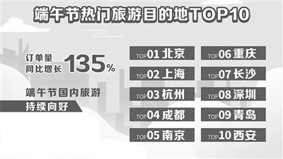 来自各大旅游平台的数据显示,端午节国内旅游市场持续向好,居民出游依旧意愿强烈。携程数据显示,北京、上海、杭州位列最热门目的地前三名,预计今年端午节出游人次将达到1亿。