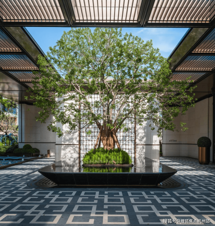 社区入口,百米酒店式落客门庭、超60年树龄铁冬青打造的“大树聚场”、潘多拉发光奢石拼花的 “躺平水院”,是家人休憩、邻里小聚的好去处;