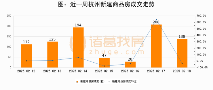 【杭州成交日报】02月18日新房成交138套、二手房214套;涨价房源65套