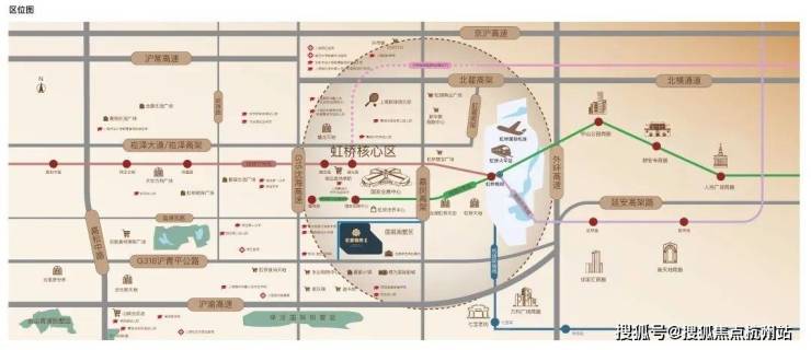 项目位于大虹桥商务区。直线距离国家会展中心约1公里(数据来自百度地图测距,仅供参考),3公里内坐拥约11万方夏都小镇、约50万方蟠龙天地、约6.2万方虹桥天地、约43万方虹桥天街等超百万方商业地标IP配套,国际名校、科创产业、多维轨交、医疗配套等资源环绕。