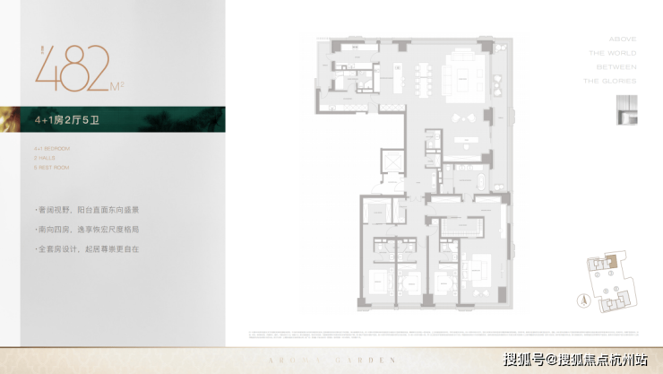 核心户型亮点:全套房设计,南北通透,客餐厅分离,飞机户型布局,南向超大面宽阳台,层高最高达 3.5 米,一梯一户私属电梯厅,动静分区考究,兼顾实用性与仪式感