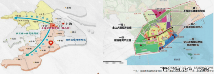 上海·金山根据《虹桥国际开放枢纽建设总体方案》,金山将全区域纳入“南向拓展带”,融入虹桥枢纽战略。以联动杭州湾,实践2035长三角一体化发展战略,树立上海西南重要门户。通过打造“上海湾区”城市品牌,成为产城融合样板城市、滨海花园城市、门户节点城市。