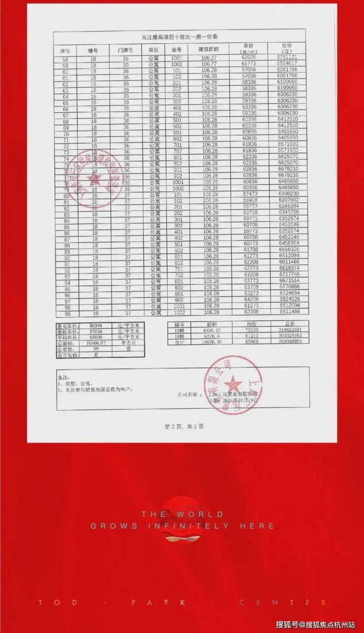 最新一房一价表: