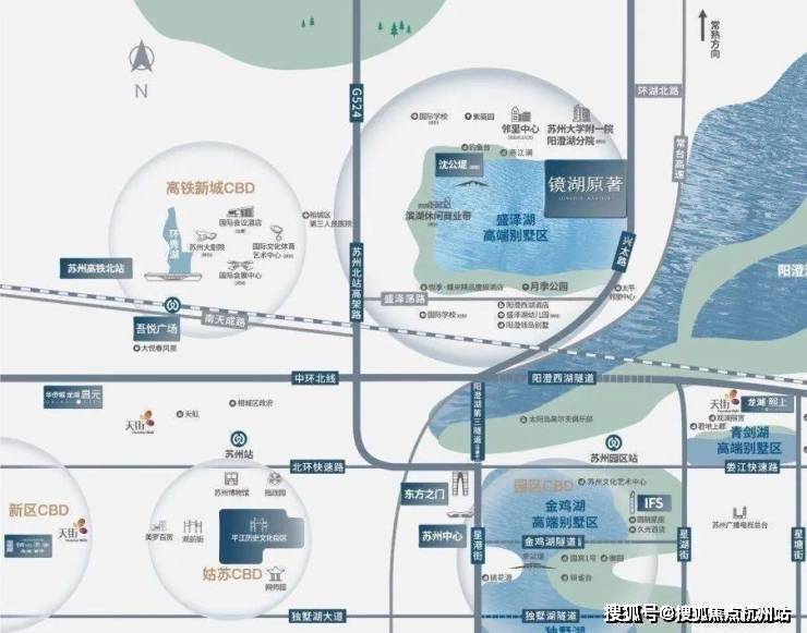 紧邻苏州北站高架/苏台高速/常台高速、沿阳澄湖第三隧道(建设中),可快速抵达苏州中心。