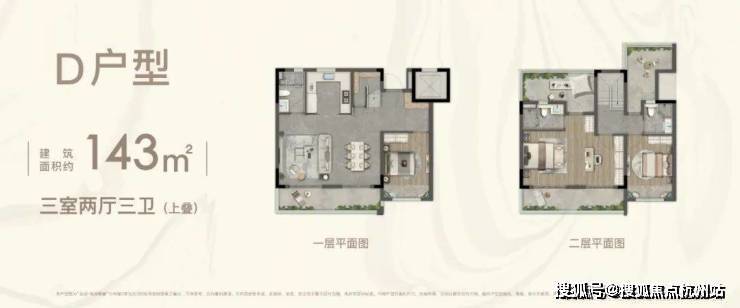 D户型(143上叠) 三房两厅三卫 348-388万