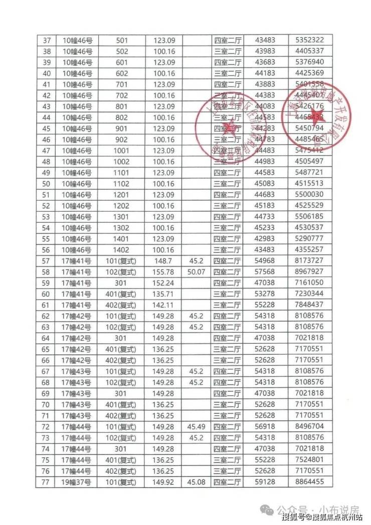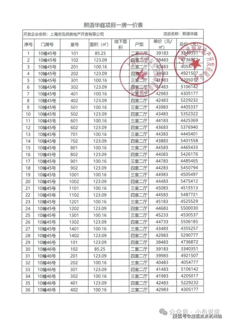 一房一价表