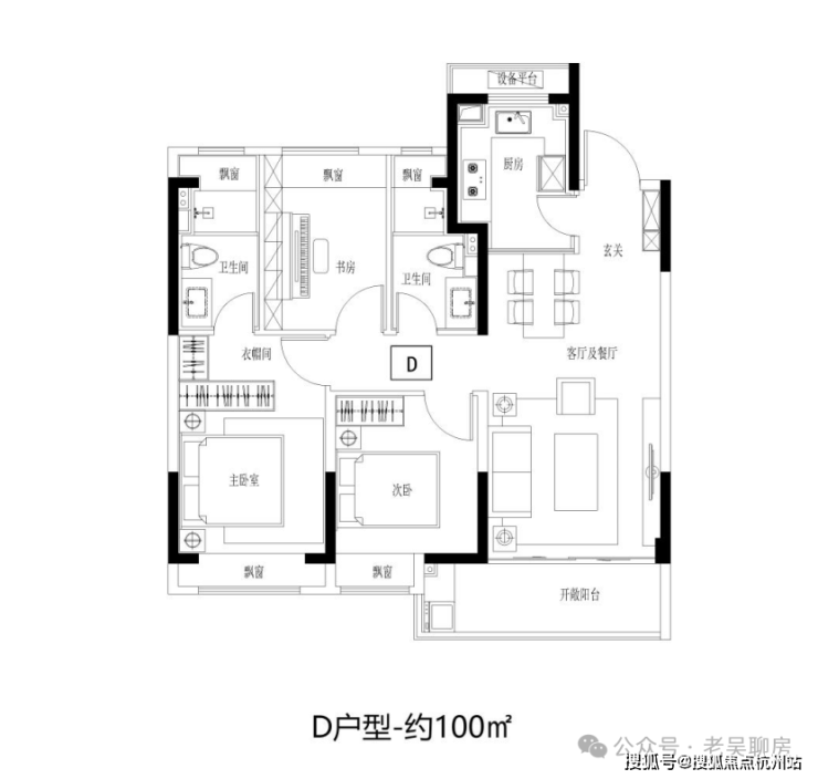 建面约100㎡3房2卫,阳光三房,同等面积更多功能;宽幅南向观景阳台,把居住变成风景;步入式衣帽间,给予生活更多从容。