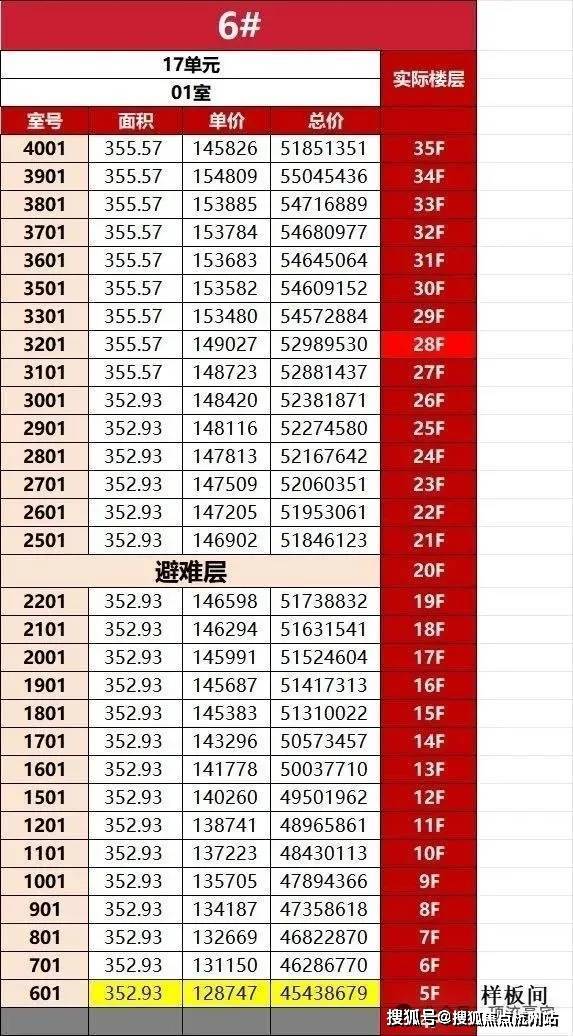一房一价表: