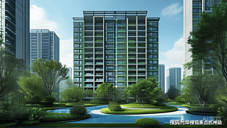 292、效果图:一种表现建筑外立面、小区景观等的平面图片。