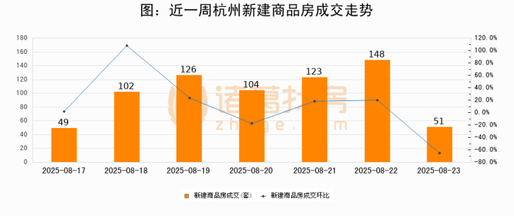 【杭州成交日报】08月23日新房成交51套、二手房181套;涨价房源40套