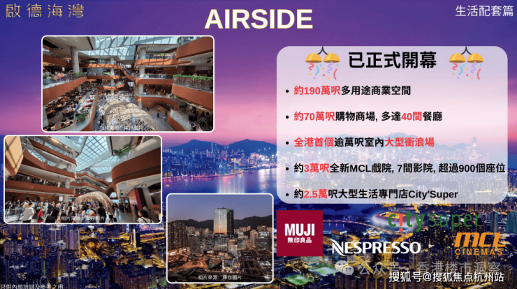 商业配套:随着Airside商场、启德体育园内的「启德零售馆」(含AEON超市)等相继开业,生活便利性已得到显著提升。