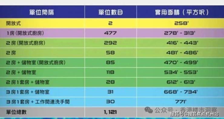 总价最便宜的单位,为6楼C室1房单位,实用面积306平方呎(约28㎡),折实售价560万港元,折实均价1.83万港元/呎。
