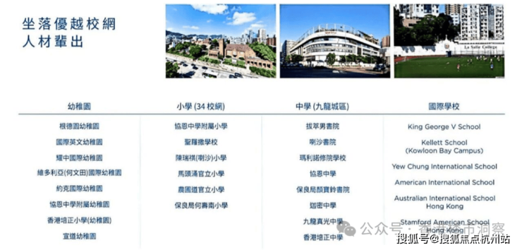 项目隶属全港知名的34号小学校网及九龙城区中学校网,覆盖圣罗撒小学、喇沙书院、拔萃男书院等名校,为有子女教育需求的家庭提供了重要吸引力。