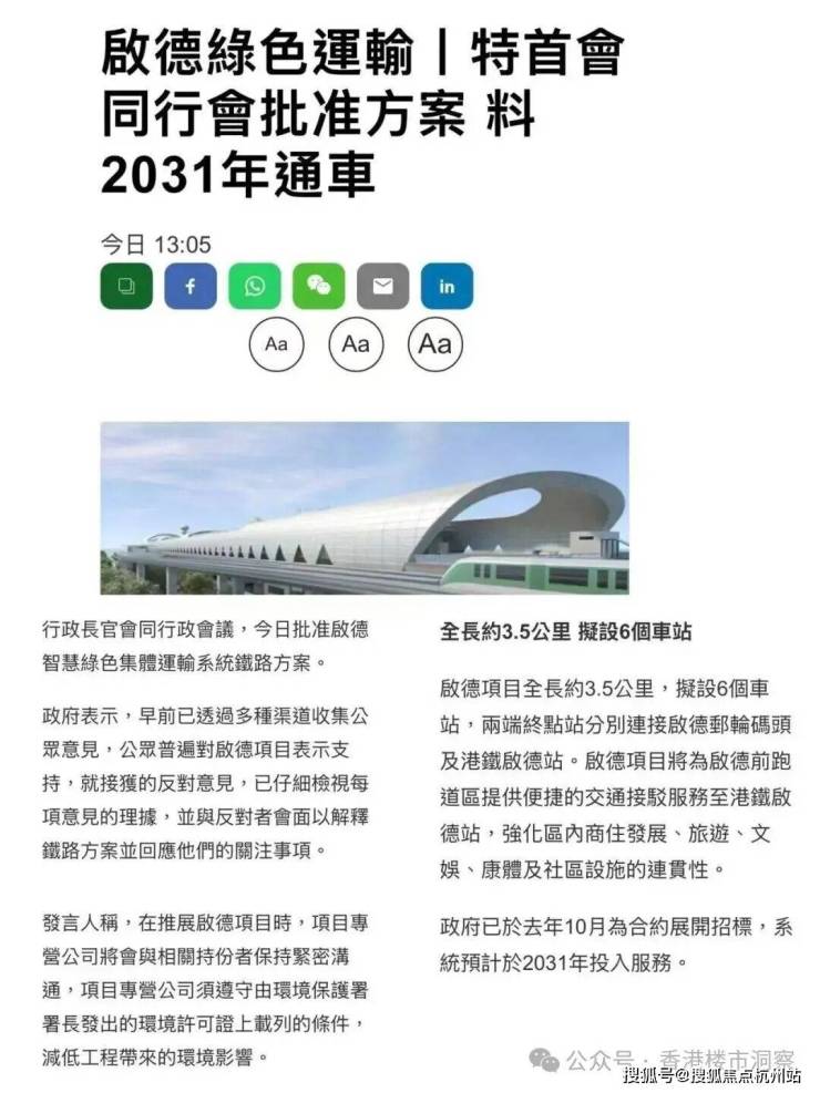 该项目全长约3.5公里,拟设六个车站,两端终点站分别连接启德邮轮码头及港铁启德站。届时从跑道区,可通过铁路连接港铁启德站,高效解决“最后1公里”通勤。而且,沿途设有多个站点,惠及整个跑道区11个楼盘。约4分钟到达九龙湾商圈。