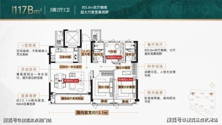 LDKB通透格局,U型厨房,畅享宽敞餐厨空间;