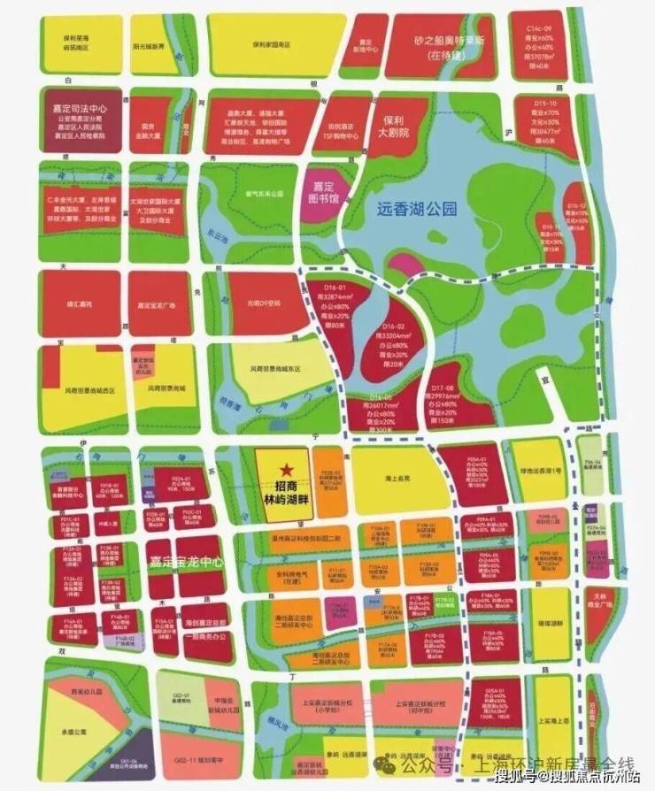 嘉定新城远香湖CAZ规划红线内,这是五个新城目前仅有的官宣的中央活动区。