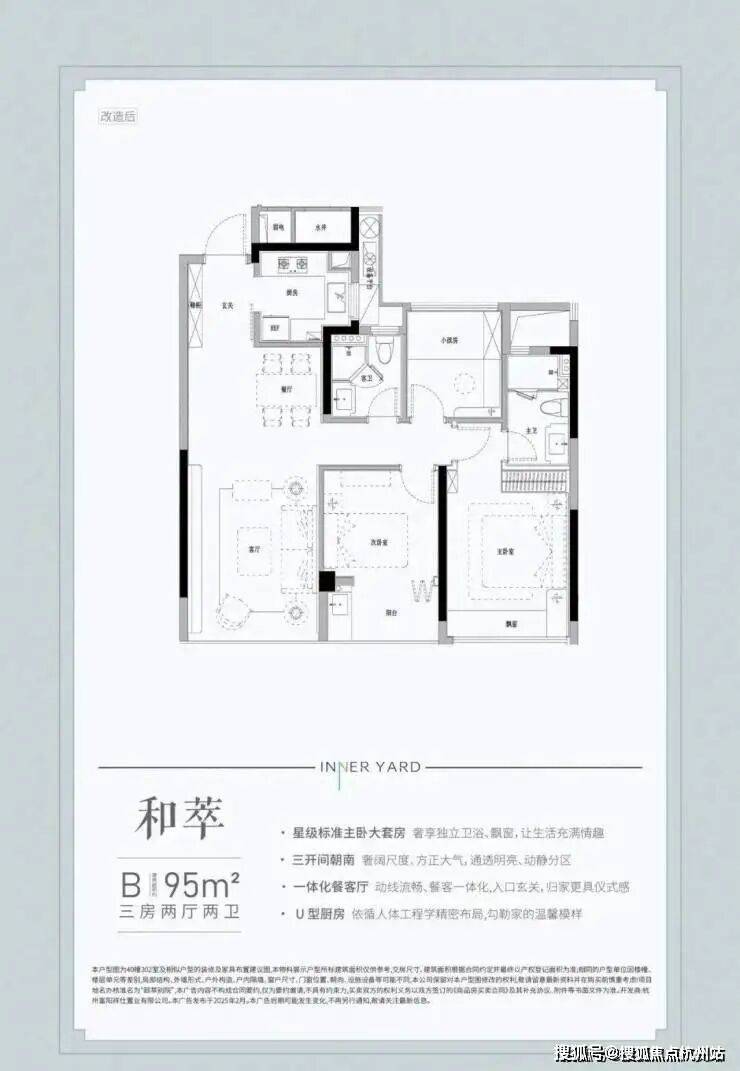 朝南三开间总面宽接近9.8米,保证室内通透明亮;餐客厅一体化设计,动线流畅;双阳台设计,既能提升客厅的空间尺度,还能满足洗晒等日常需求。