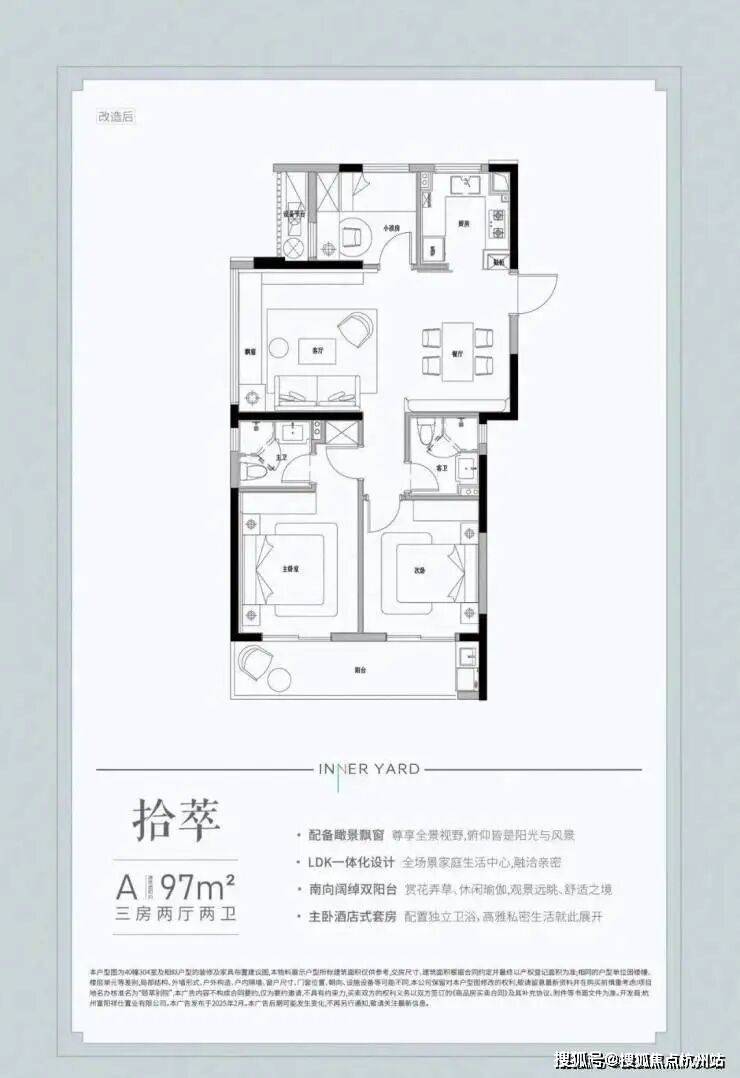 建面约97㎡为边套全明户型,是目前市面上极为稀缺的小户型边套。