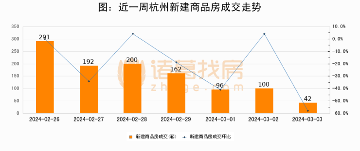 【杭州成交日报】03月03日新房成交42套、二手房96套;涨价房源91套