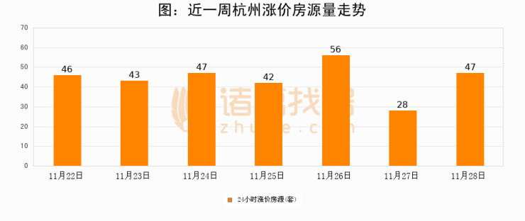 根据诸葛找房数据显示,杭州24小时涨价房源量为47套,较11月27日增加19套,环比上涨67.9%。与此同时,涨价房源占比小幅扩大,业主信心有所提升。