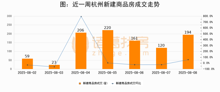 【杭州成交日报】08月08日新房成交194套、二手房210套;涨价房源38套