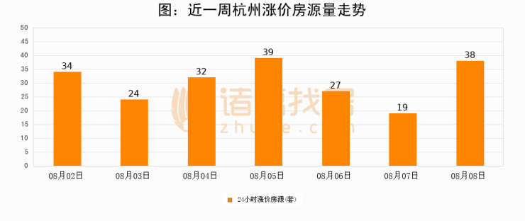 根据诸葛找房数据显示,杭州24小时涨价房源量为38套,较08月07日增加19套,环比上涨100%。与此同时,涨价房源占比小幅扩大,业主信心有所提升。