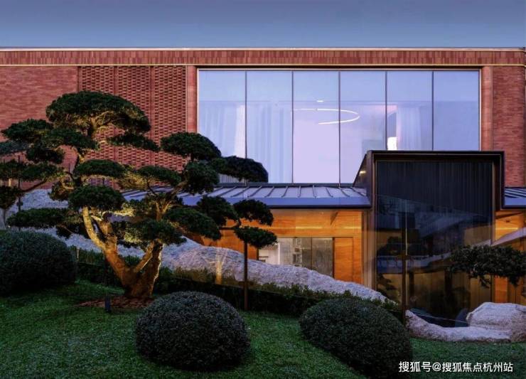 例如,在社区入户,目前已经完美呈现出来的,有强烈视觉冲击的立面大量的红砖、红洞石及大面积的落地弧形玻璃搭配的相得益彰,整个门头既有厚重的历史感,又不失极简主义的现代美。