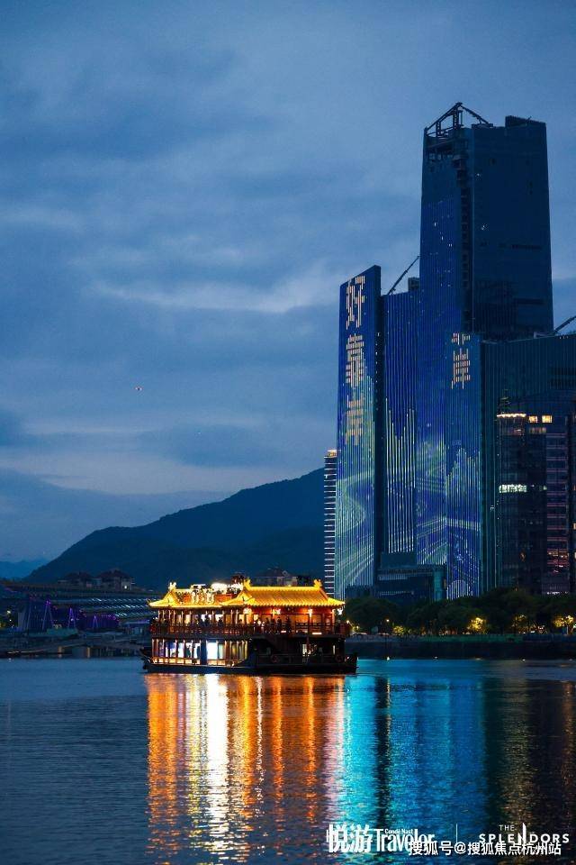 随后,嘉宾登上“富春山居号”游船,“览秀首航”夜游之旅正式开启。游船缓缓驶离码头,鸣笛声响彻江畔,标志着杭州金茂览秀城项目的正式“启航”。当游船行至杭州金茂览秀城沿岸,灯光秀璀璨绽放,建筑轮廓在光影中勾勒出一幅现代版的富春山居图景。在江风与夜色中,嘉宾们于甲板之上自由交流,沉浸式体验“白天的城市漫游、下午的商业体验、夜间的水岸生活”这一完整的富阳城市新路线。