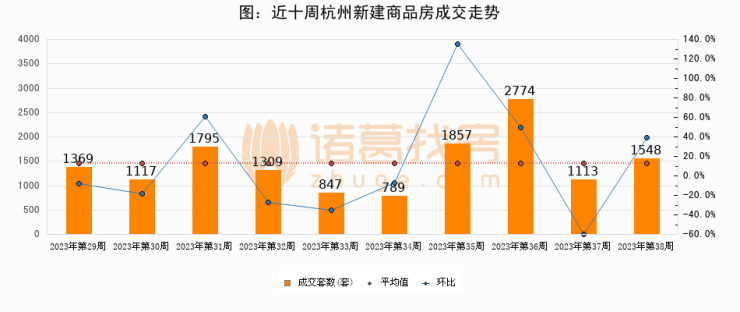【杭州成交周报】第38周新房成交1548套,二手房1098套,涨价房源465套