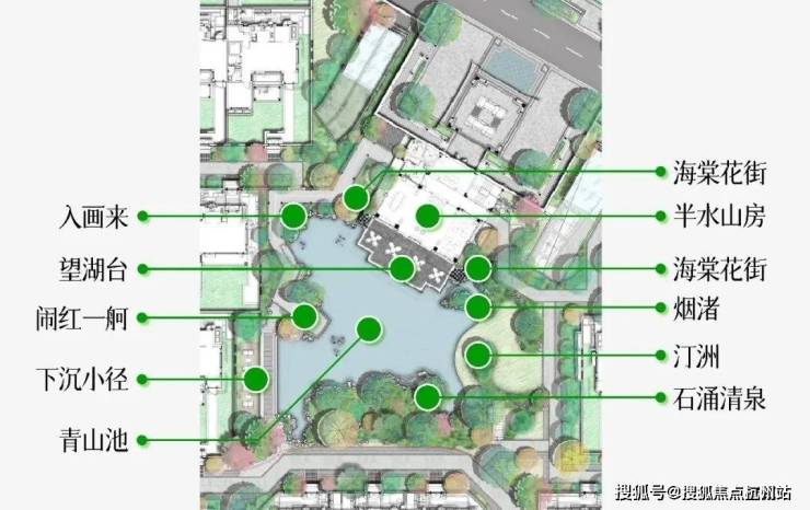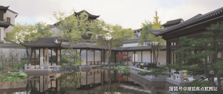 项目的园林,借鉴了苏州拙政园、东京旧芝离宫等的造园灵感,并糅合九溪烟树、西溪湿地等,形成「一溪两园三十景」把韵味悠长的诗境,在项目中再现。