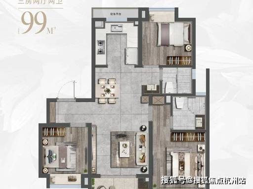 2. 建面约 99㎡ 3 房 2 厅 2 卫(主流刚改)