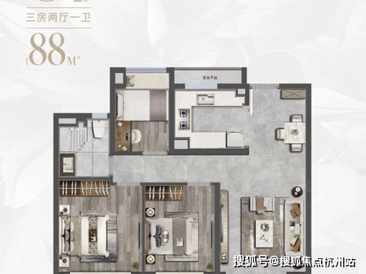 1. 建面约 88㎡ 3 房 2 厅 1 卫(刚需爆款)