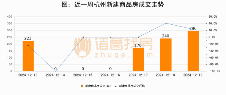 【杭州成交日报】12月19日新房成交296套、二手房267套;涨价房源52套