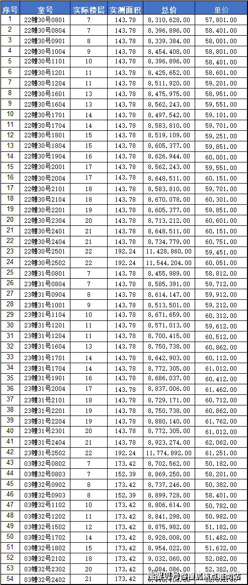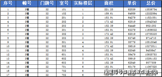 阳明花园广场二期(二阶段二期)一房一价表