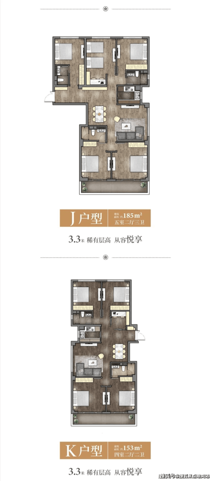 户型:3+1房2卫,4+1房2卫