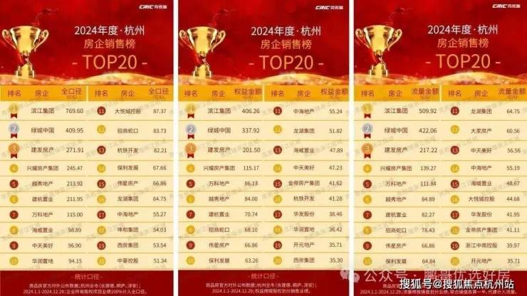 兴耀房产集团2024年销售额全杭𝑻𝑶𝑷𝟒荣登2024年1-10月杭州房地产全口径榜、流量榜𝑻𝑶𝑷𝟑