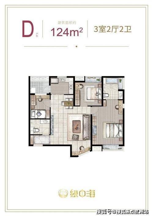 建面约124㎡3房2厅2卫