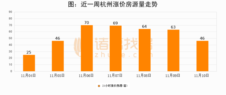 根据诸葛找房数据显示,杭州24小时涨价房源量为46套,较11月09日减少17套,环比下降27%。与此同时,涨价房源占比小幅回落,对于购房者来说是一个入市窗口期,购房者可抓住时机入市。