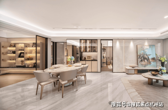 「玉兰门庭」摩登飘逸,环抱式落客前场,大师定制非遗掐丝珐琅门钹,流转温润光华,敬呈归家尊崇礼序,自此启幕生活的华贵序章。