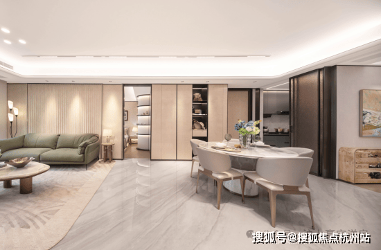 萃取东方色谱精粹,建发·海宸甄选丝箔流金、东方雅铜,青釉奢蓝,以当代笔触晕染立面,令传统色彩在空间生长为永恒的诗意,「入户门头」形取和平饭店经典拱门,配以碧绿色天然石材门套、彩玻花窗,重现百年外滩门廊的尊崇仪式。