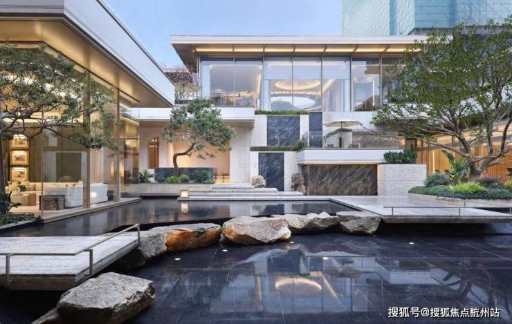 古树玉石、天幕水景,交织出了一派金铺玉户的气象,是理想生活该有的排场。