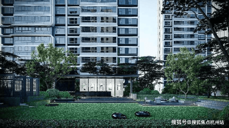 外立面上:建筑主立面以公建品质的现代型材构造把控立面细节,以修长挺拔的建筑形态,勾勒出轻盈灵动的几何立体质感。