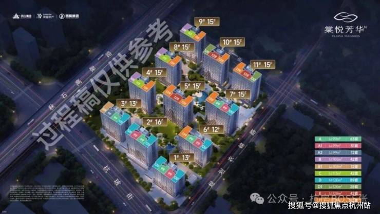 基本参数:项目总建筑面积约 8.6 万平方米,容积率 2.2,绿化率 30%,规划 7 栋 14-18 层精装高层,共计 504 户,由杭州滨华房地产开发有限公司开发。