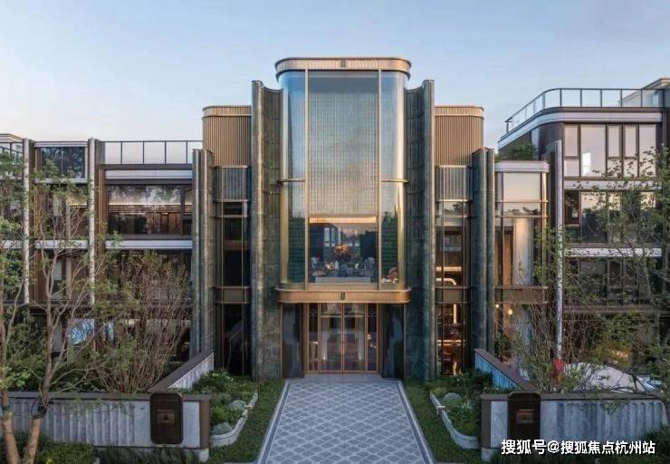 萃屿原墅立面采用大面积玻璃、金属线条、威斯康白石材,将松江新城的住宅建筑美学拉入下一个LEVE,尤其是香槟色金属线条如剪裁合体的高级西装骨架,勾勒出建筑的精致轮廓