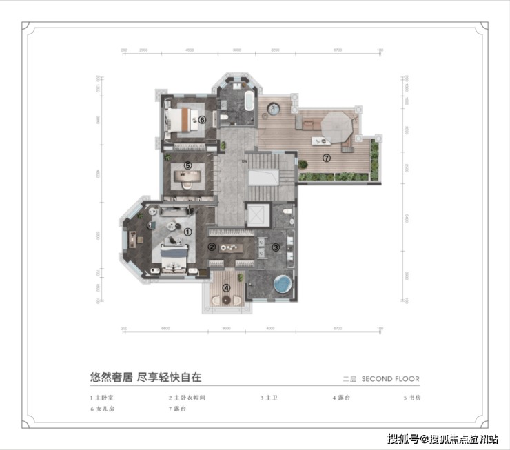 主卧配备了独立书法,步入式衣帽间,开阔露台,保证主人们的惬意生活;