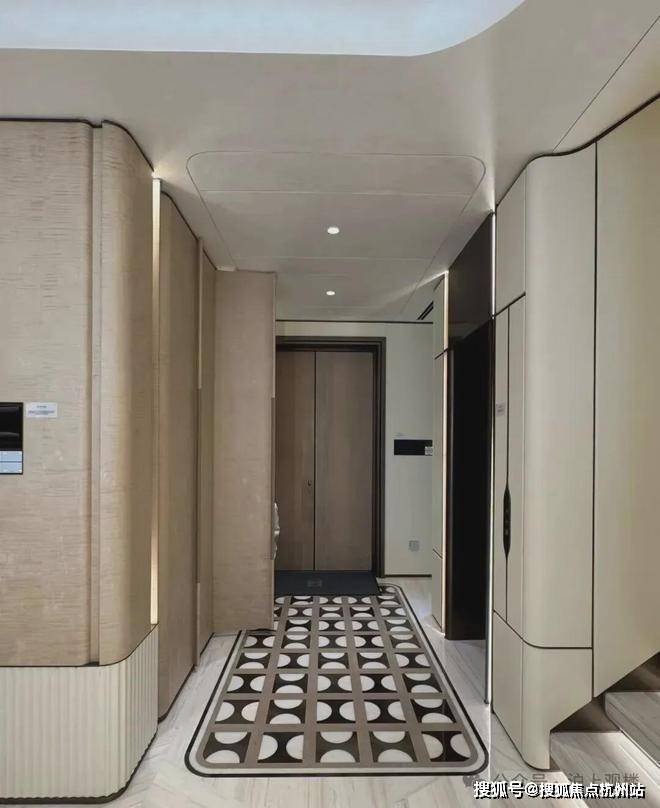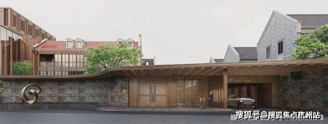 高定公区,重塑海派归家史诗;隐奢门庭:社区大门以古琦黑奢石手工锻造弧形幕墙,将珠宝镶嵌工艺融入建筑肌理;