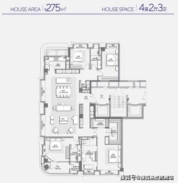 我们重点来看一下275㎡户型设计,先看看优点: