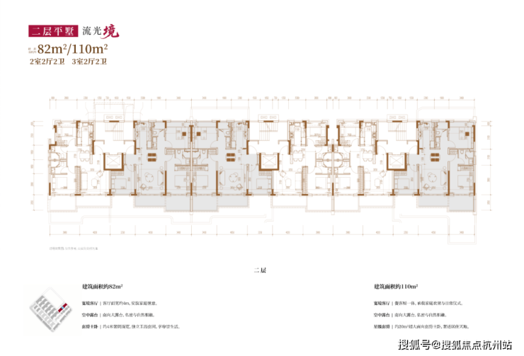 建面约82㎡2房2厅2卫/110㎡3房2厅2卫(三层上叠):